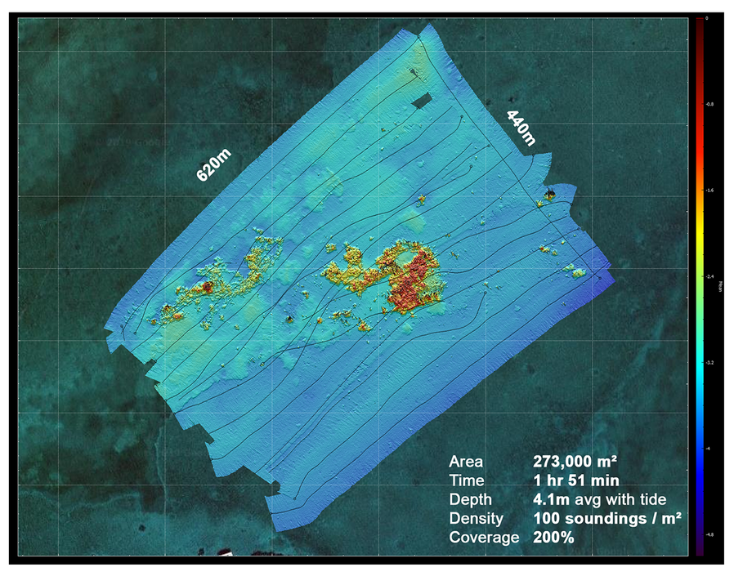 At the same time, its ability to achieve bathymetric coverage up to 14 times the water depth allows teams to scan larger areas with fewer survey lines, especially in shallow environments where efficiency is typically limited.