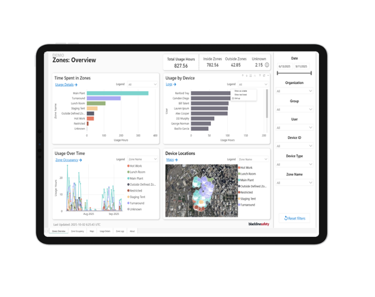 With ZoneAware geofencing, teams can define specific areas on a map to monitor worker movement, time spent in high-risk zones, and overall site activity.